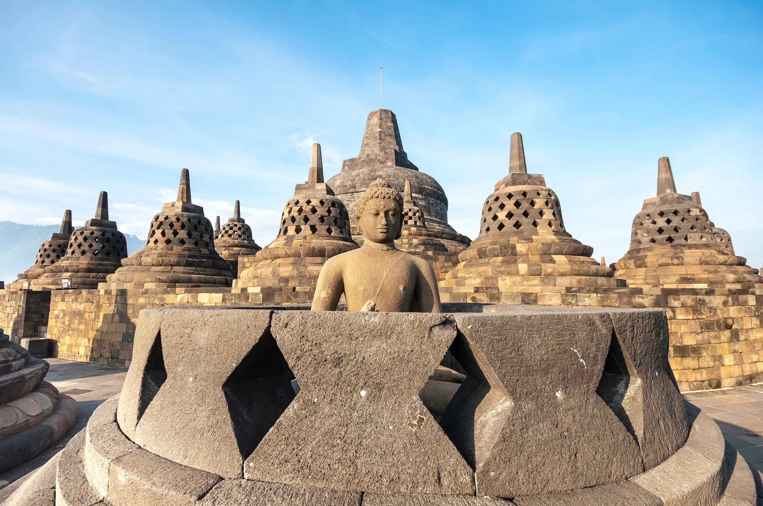 Bewundern Sie heute in der größten buddhistischen Tempelanlage der Welt, Borobudur, die kunstvollen Reliefs und die fast 500 Buddhastatuen. Anschließend besuchen Sie das Dorf Candirejo für ein authentisches Mittagessen bei einer lokalen Familie. Anschließend unternehmen Sie bequem in einer Rikscha oder Kutsche eine Fahrt durch das Dorf. Am Abend können Sie durch die Straßen schlendern und lokale Köstlichkeiten an den Straßenständen probieren. (F/M)